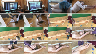 Agent Juliette is in the house of Dr. X. She is in the cellar and call her agentoffice. She doesn’t know that Dr. X watches her the whole time via hidden cameras. As she comes in a bedroom he pushes a button and Juliette lays on the floor. Dr. X comes in the room and is really happy that he overpowered such a cute agent. He pulls down her blouse, jeans, boots and also slip. He drags her out on her feets.