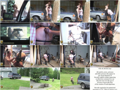 Here at the House of Gord we are well equipped to ship, , transport, and trundle any number of nubile ladies, and often in bulk shipments. In this set we have two intrepid damsels being transported at the same time. First we mount Allison. She can’t wait to get her pretty ass trussed up. She almost jumps on the hood without any coercion. A few minutes later it’s Seven’s turn. With the armsheath tightened up, she is quickly bent forward and cinched down.