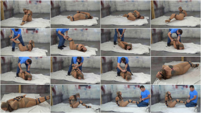 Slave model Angel pantyhose bondage on the floor bizarre action.
