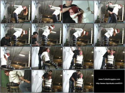 I caught this little hooker almost right outside my door. I’m usually only in my shop from 9 to 5, but I had some work to do and came back late. Whenever I get the chance I capture and torment them until morning in hopes that they’ll move to another neighborhood, as they breed trouble for mine. The clip starts with ashley’s wrists bound behind her back and pulled up high behind her. She starts yelling, so I stuff a pair of Huge panties in her mouth and then seal them in with micro-foam tape. I then start binding her legs. I tie her upper and mid thighs, as well as above and below her knees. 2 more bands are added below her knees as well. I smack her ass hard a good 10-15 times then I go get some of my work done as I leave ashley to struggle. I decide to take a break from work and continue to add more rope to ashley. I take her arms down from overhead, and sit her down in a chair. I remove her gag and tightly strap in a big pink ballgag instead. I tie a piece of rope into her hair which will come in handy later. I then start binding her upper body. I start with her elbows and wrists. I then add a simple chest harness. I squeeze and manhandle her tits. She’s used to this I’m sure, but the difference is she’s not getting paid tonight. I continue binding her upper body until I’m satisfied that it’s tight enough for my liking. This is where Part 1 ends.