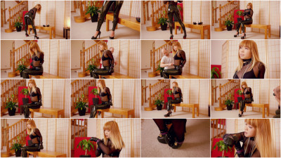 I was wearing a pair of brand new slick black stretch PVC leggings and a mesh bodysuit. I tried putting on my new Lambskin Leather Mittens as much as I could without help, but I needed some help to get them laced up, locked and secure. They felt snug and comfy, but very secure once locked so you cant escape. Some thick leather belts were added restraining my arms and my legs, elbows bound and my arms pulled to one side of my body and secured to my waist. I was wriggling around and was not really able to do very much with my elbows tightly bound and my hands trapped in the mittens. Eventually the key to the mittens were left right there on the bench within reach, however no matter my attempts, I was not able to unlock the locking strap on the mittens!
