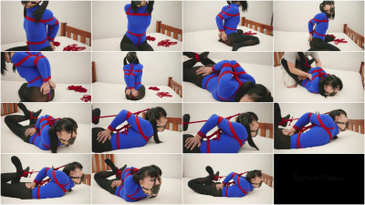 I quite often submit Mina to very intense and tight hogties, both in personal life and online here, but every once in a while I go one step further, trying to push her limits and see how bendy she can go, and Mina is capable of enduring some of the most unholy hogties I have seen. I had her put on a simple but super hot blue bodysuit and tights combo, then proceeded to tie her elbows into one of my favourite positions, her elbows into a bent position in the small of her back which actually adds to the intensity of the bondage. After a little while of shooting her struggling like that I proceed to bend her into an unholy hogtie, you can see how I do this on screen, supporting her body on my knees and using that to tighter down the tie. The result is amazing as usual and because this one was especially difficult for her just about ever second you see of film is the most she could take, having the elbows into that position makes the whole thing way more difficult to bear than straight arms. I had to cut the rope as soon as the camera stopped rolling. Thats my girl!