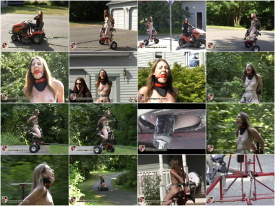 Charlotte is strapped in and ready to ride on Gord’s tractor driven Saddle Fucking Machine. Fully wired with electro pads and tens units. Charlotte will be lit up while being fucked hard.