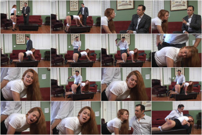 The next round of corporal punishment in this act is administered with Chey kneeling on the leather bench, tucked under Arthur's arm. Hand and leather tawse are used to correct luscious Cheyenne with plenty of verbal reactions to punctuate each juicy swat. What a beautiful spanking couple!