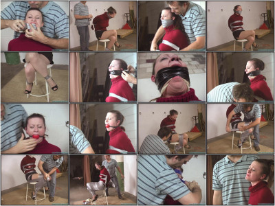 Serene has a password that I need, but she’s not talking. I grab her by her hair and pull out a pair of panties. I stuff them in her mouth and then seal them in with gray tape. I start adding more tape around Serene’s waist as well. I leave her for a while. I eventually remove her gag, but she still isn’t talking. I cleave gag her tight with turn after turn of elastic wrap. It tightens with each wrap, giving serene fish lips and a triple chin. To top it off I wrap her mouth with wide black tape as well. Serene was all about struggling and insulting me a few minutes ago, but now she is silent and not moving much at all. It’s amazing what a punishing gag can do. I get back to taping Serene to the chair. After a while of this I remove her gag again. I grab her by her hair and manhandle her a bit and ask if she’s ready to talk, but still won’t cooperate. I strap a huge red ballgag in her mouth tight! I get back to taping her to the chair. The ball gag by itself is not good enough, so I wrap 4 inch microfoam over the top and around her head. That’s better. I cut an area out of her sweater that is covering her nipples, before I continue taping Serene to her chair. I finally remove the tape and ballgag. Once again she’s still not talking. In goes one of my tube socks. Its taped in with clear stretchy tape. I continue taping Serene to the chair for a bit. I get some blue electrical tape and add it to Serene’s gag. After I’m done, she doesn’t look happy at all!! Once again, more tape is added to serene’s body. I Finally remove Her gag. I grab her by her hair again as she grunts in agony. This is where Part 1 ends.