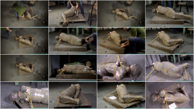This Clip starts where Part 3 ended… I see a few places where more tape is needed and I take care of that, before binding her to the pallet with more twine. Yes, I could have done this better… I see that now, but overall she is pretty securely bound. I run off to make a shipping label as she moans and struggles mummified on the pallet. Before she is loaded up on the truck, I clamp her nipples and tie them off to her collar and then I tape the label next to her. Nothing for me to do now but wait for the truck and nothing for Diamondly to do but twitch as struggling is not much of an option in her case.