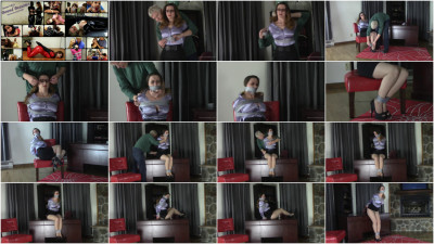 Serene is being roughly taped at the start of this clip by a man who doesnt seem to want to answer her questions as to why. More tape is added around her body above and below her breasts before shes seated on a chair and after her glasses are removed and her ankles tied gags her with a large pair of panties and silver tape. With a few parting gropes he leaves her to struggle in the chair while he ransacks her house. Serene isnt one to just go quietly however and soon shes up and hopping across the room until she gets herself on the desk to grab the pair of scissors that the man left. Unfortunately for her though hes returning just as she gets her hands on those so not much progress is made there. Finally after she struggles to the floor the man returns and hogtapes her by attaching her gag back to her feet. The noises that Serene makes from here on are evident as to how tight the hogtie is as she struggles to breath steadily because of the tight bondage.