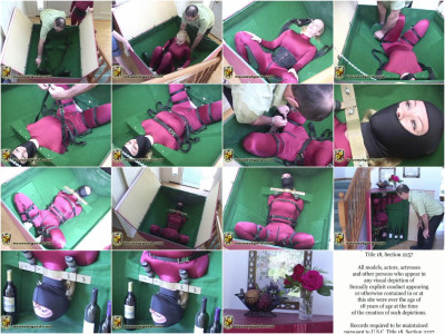 A triple feature: The first little scene was actually the end of a long day for Eden. Most of the day she had spent in a couple of tortuous ordeals, so we figured it was only fair that she should also get some R & R (dangling on the porch as hanging ornament) as Serena and Gord relaxed with a couple of drinks. Another gig was to see if Eden could be squeezed into a special cabinet that was built for Jewell Marceau in the forthcoming movie entitled “Room 237”. But Eden is quite a bit taller than Jewell, so we knew it was going to be a tight fit. But then again, we like “tight” don’t we! And the third gig is yet another water-torture we did with Eden.