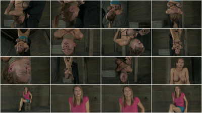 Still dressed in what she wore to the studio, Rain finds herself suspended upside down with her legs spread, elbows tightly bound together, and her wrists tied. Her huge boobs are already bound with thin leather that bites deep, making her huge nipples pop out even farther then normal.