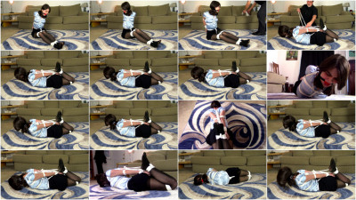 No story line here, just Jeanette Cerceau truly suffering in the tightest hogtie she’s ever been in! She starts of with her body tightly bound, elbows welded together, ball gagged and struggling in a nice shiny blouse, short tight skirt, and heels. She knows what’s going to happen to her, and she tries her best to get loose, but she can’t stop me from flipping the poor girl over on to her stomach and pulling her body back across the floor so I can have more room to work. She gag talks up a storm, warning me not to do this, but her words are no more than wet gurgling syllables of nonsense to my ears. She ‘s quickly put into a hogtie, nothing new for her…or so she thinks! She’s never been in rope this tight before! She yelps into her gag as I lift her legs off the floor and her tiny body to arch severely as I keep tightening her ropes. By the time I tie off the final knot, she’s in agony, drooling and bubbling as she gurgles into her gag in protest and pain. She wiggles and thrashes as best she can, but she cannot loosen anything even a fraction of an inch. She finally manages to roll onto her side to ease the pain a bit, but I immediately come back and roll her onto her stomach. She’s dong everything she can to endure the position, her breath coming in short pants as she moans and whines. Finally, the poor girl can’t take another second of this torture, and we cut the scene. Jeanette really suffered in this one!!