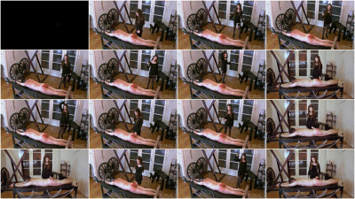 She tugs on them and the gagged slut moans in pain. “I will take care of you” she tells him.