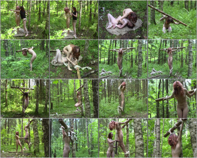 Slaves lena and sasha double cux extreme action in forest…