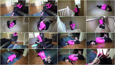 Home girl Lydia Black Bondage hard roped on the floor, amateur video.
