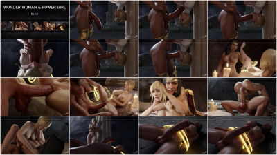 Power Girl wakes up to see a giant cock in front of her, her eyes are in shock at how big it is, she looks up to see Wonder Woman, the owner of said cock. Power Girl realizes she’s tied upside down by Wonder Woman’s lasso of truth but can’t break free. Wonder Woman wastes no time, whipping her cock onto Power Girl’s face before pushing it down to Power Girl’s mouth & it inside her. As Power Girl gurgles & moans with her cock in her mouth Wonder Woman strokes her cock. After stroking it for awhile she shoves it all the way deep inside Power Girl’s mouth, Power Girl can barely take it. Wonder Woman begins thrusting the full length of her cock in Power Girl’s mouth while she admires Power Girl’s pink pussy & licks it. Wonder Woman continues to fuck her mouth until she cums inside it, keeping her whole cock in the mouth as cum begins to pour out & down Power Girl’s chin. Wonder Woman now has Power Girl fully naked on her back as she teases Power Girl’s pussy with the tip of her cock pushing it in & out of her pussy. She begins thrusting a little deeper before she cums in Power Girl’s pussy, she continues thrusting after against the cum. With Power Girl now on the floor on her stomach, Wonder Woman takes her from behind in the asshole, thrusting hard & deep into her ass. Wonder Woman cums pretty fast in her ass, the cum pours all around her cock onto the floor but she continues to fuck her ass with slow deep thrusts. Power Girl now on top of Wonder Woman cowgirl style, getting more into it fucks Wonder Woman’s giant cock while Wonder Woman lightly chokes Power Girl’s throat. Wonder Woman cums inside Power Girl’s pussy but Power Girl “powers on” & continues to ride the fuck out of Wonder Woman. After fucking Wonder Woman until she’s completely exhausted, Power Girl ties Wonder Woman up with the lasso of truth, she then watches as Wonder Woman now tied up with a cock fully erect cums on her own stomach…Power Girl looks amused.