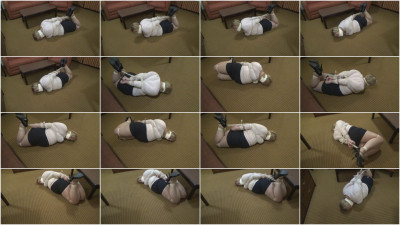 Pearlrose is captured and placed in a very tight and restrictive hogtie. Wearing a skirt, blouse, pantyhose and high heels I enjoy watching this damsel struggle and try to find an escape. Her attempts are futile, but her effort is entertaining. To add to her peril and predicament her mouth is stuffed with panties and a tight microfoam tape gag is added to make sure the panties stay put. To add to the entertainment value I spank her some and I also push and pull her onto her side just to watch with delight as she struggles to get back onto her stomach. Although she gives great effort and her struggles are wonderful, eventually this damsel will learn that the ropes are too tight, the hogtie too restrictive and that escape from her predicament is futile.Her struggles are futile, yet entertaining and she struggles to find any chance of escape. Peralrose portrays the classic girl next door, damsel in distress victim as she fights and struggles in her skirt, blouse, pantyhose and high heels. This damsel gives it her all in her attempt to escpae her bondage, and while her efforts are entertaining she will in time come to the conclussion that there is no escape and she is destined to be captive for as long as I wish. Tight bondage, mouth stuffed and tight tape gag and an inescapable predicament, this is the BondageDownSouth way.