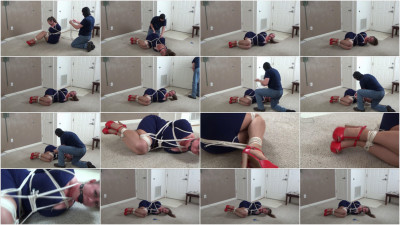 Having just finished tying sexy pepper’s legs to her chest to put her into a ball tie I decide that Pepper needs more rope pulling her into a tighter predicament. I lay Pepper over into the floor to prepare her for her next addition of rope. Soon i grab some more rope from my stash. Looping one end arond Pepper’s tied ankles and the other around her tied wrists, I pull and cinch it down tight, looping the remaining ends of the rope around her wrists and ankles before tying it good and tight. Pepper’s ankles have now been pulled tight up towards her sexy ass, further tightening her into an inescapable ball tie. I leave Pepper to attempt to struggle in her very tight and restrictive bondage.