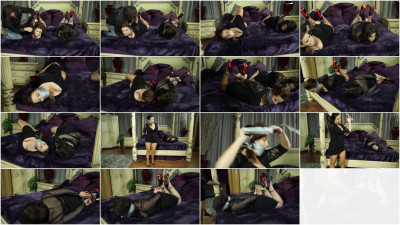 Bondage models Plush And Dominica cuffed on bed action…