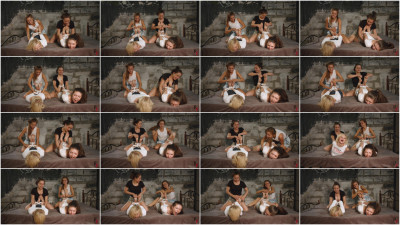 Quadruple tickle madness. Leya and Tonya torment Vila and Dana.
