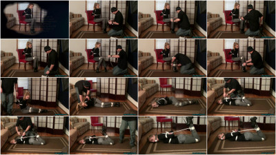 Sexy, petite bondage gal Rachel Lilly wears super high heeled platform black leather ankle boots! This sexy sweetheart was teasing me in her high heeled boots and was just begging to be roped up tightly and gagged! Rachel was quickly overpowered and put in tight ropes…a huge white ballgag keeps her very quiet! Rachel is manipulated by her captor and taken to the floor for some struggling…she is helpless as her captor ropes her into a tight hogtie and leaves her to suffer and struggle in her predicament!