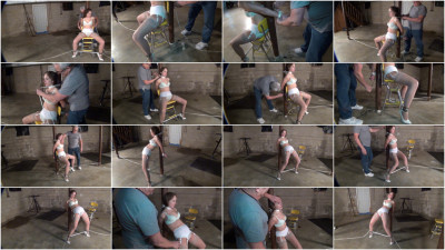 Rachel Adams stops by for a long overdue bondage session. It starts out friendly enough but soon turns into the peril that is the classic leg burning, fear of tightening neck rope, short leg predicament. Little by little her suffering gets worse as the rope ratchet click, click, clicks…pulling her tightly tied wrists down, making it harder and harder to save herself.