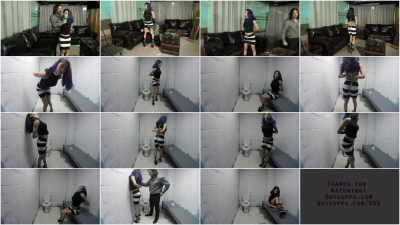 Brunette sexy teen Simone extreme cuffed metal bondage in prison.