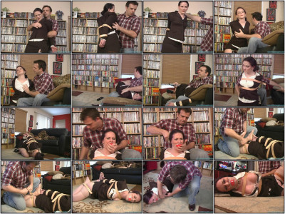 I knew she’d take the bet. You see caroline isn’t to fond of me. She has been with the company for 5 years. I have only been there for 2 and am on the same rung as her when it comes to the corporate ladder. I have been working on a huge new contract that she said I’d never get. I bet her that I would. She accepted the bet and the consequences if she lost. Needless to say, I won and today I get to collect. She comes over on a Friday afternoon right after work in her office attire. I grab her by her hair and make her into the living room. I immediately grope and manhandle my prize for the weekend. caroline is pretty unhappy about losing and she shows it. She makes snide remarks, but I don’t care. I won’t have to hear her much longer as Soon she’ll be bound and gagged. I decide I’ll use some leather straps to start with . I strap her elbows, wrists and ankles as I continue to manhandle and smack her bountiful ass. I sit on the sofa and put her over my lap and turn on the TV. I watch as I continue to grab and grope caroline. I get tire of her mouth and put her on the floor on her knees. I stuff a huge foam ball in her mouth and then seal it in with clear tape. I roll her on the floor and use more leather straps to frogtie her. I tell her to struggle for me, and I smack her ass when she doesn’t struggle hard enough. I sit back and watch. I return and rip open her blouse. Her tits are pulled free of her bra and I smack them as well. caroline gets a collar as well. It seems appropriate, since she’ll be my bitch for the weekend. I wander off and leave her to struggle frogtied once again. I return with a big handful of metal handcuffs. The clip ends there.