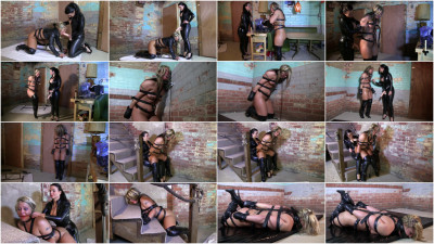 Adara is being trained as a pony girl by JJ and being sold off. Only the buyer wants Adara to have more training after his left purchase of a ponygirl (Dixie Comet) didn’t go that well. She needed more training. After a trip to the beauty salon to have her hair dyed black from red she gets into more training with Adara who is cuffed into a metal number on all 4s. JJ removes her gag after some struggling and makes Adara suck on her giant new penis. Once it is lubed up it is stuck into her vagina. This has got to train the ponygirl. She is given a real gag for a pony which makes it hard not to gag. Then the pony girl is to walk in 6 inch boots but her feet are her before she even begins. She can’t keep balance or good posture so she is punished on her knees hooked up to the wall and to such on the strappon again. Then she is walked back and since she still can’t walk properly she is to ride the big cock, first from bouncing on top of it then she gets it from behind. The poor pony girl is then left strapped up on a mat, her gag is changed to a big sock to keep her nice and muffled and then a leather blindfold is applied. She gets to get some rest, until tomorrow…time over 41 minutes, very little is shown of the model getting into bondage, mostly storyline/ struggling.