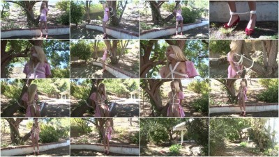 Nurse Odette Tree-Tied. outdoor extreme bondage action.