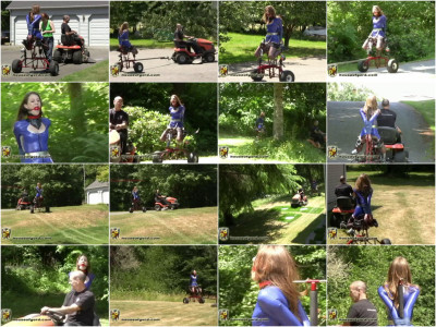 In a latex min-dress, Charlotte gets the saddle fuck treatment. Her fucking duration is only matched by the amount of time she can walk on ballet boots. Ask she is pulled along by the tractor, the axle rotates and also pushes the dildo in and out. Charlotte is lit up with electricity to really make for a screaming good time.