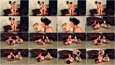 Both naked and bound Kate and Claudia are kneeling close to each other. They are pretty exited, probably because of intimacy. Left to themselves the girls managed to push out the ropes brought through their mouths so they start kissing in bondage. It is a reason for an additional punishment. They are tied up again on the floor more tightly that time. The ropes returned between their lips. Kate is hogtied and Claudia – frogtied. The cuties roll on the floor loudly moaning. Their helpless bare soles get hard tickling.