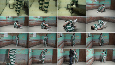 Sexy girl Vanilla gags and cuffed metal bondage in prison action.