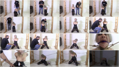 Continuing with our activities from the last update, Vivienne is bound to kneel on the floor. I bind her neck so that she cannot move, down or up, and then untie her knees from each other. I then spread them wide and tie them off to the frame so she cannot close them. I now have free access to her crotch to do as I like to it, which is pretty much the case all the time except when she is able to wiggle and try to fight me. But in this case she knows that it is better that she doesn’t, simply does as she is told, and for that good behavior I give her the wand and let it stimulate her to orgasm a couple of times. We really enjoyed shooting this for you and yes, this is really our play time. Yes, this is a real scene between a real couple. We hope you enjoy!!!