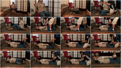 Wenona has been captured again! Tight white ropes tightly bind this damsel and a huge white ballgag keeps her silent! Wenona sexily struggles in her skintight jeans and high heeled boots, knowing full well she is at the complete mercy of her captor! Looks like Wenona will be kept in captivity for a very long time!